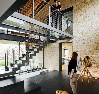zaměřujeme se na individuální návrh ocelových konstrukcí schodišť, zábradlí, do interiéru také vzdušné a moderní dveře v industriálním stylu